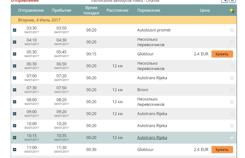 Билет до Опатии обойдется в приблизительно 13 евро. При этом особой разницы в цене, будете вы ехать на прямом автобусе или добираться с пересадкой, нет.