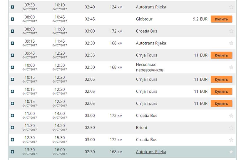 Отсюда отправляются автобусы не только практически во все города Хорватии, но и в другие государства: Словению, Италию и так далее.