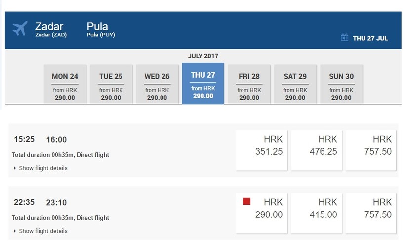 Перелет обойдется от 290 хорватских крон (39 евро).