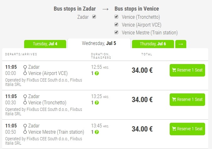 Ехать из Задара в Венецию можно через Любляну. Такой вариант можно встретить в компании Flixbus.