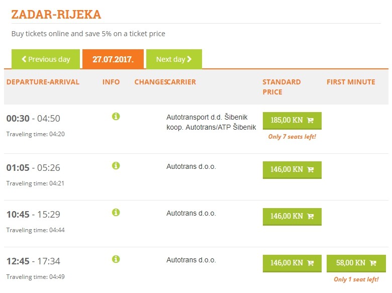 Приобрести билеты можно в кассах тех автостанций, откуда и будут стартовать автобусы. Но в таком случае существует вероятность, что нужный проездной может и не быть в наличии. Поэтому лучше всего оформлять в онлайн режиме. А для этого можно воспользоваться официальным веб страницами перевозчиков — Flixbus, Autotrans, Brioni Pula, Crnja tours.