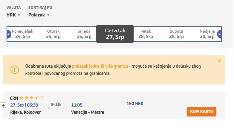 Из Риеки в Венецию отправляется один прямой автобус от компании Crnja tours.