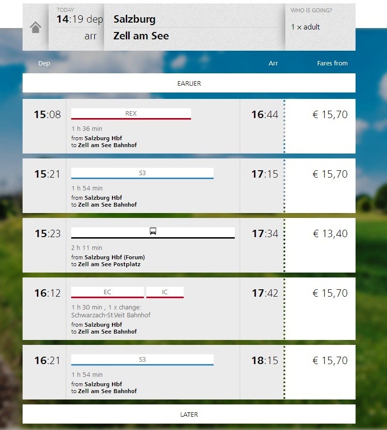 Если выбирать, на чем добираться в Цель-ам-Зее, то из общественного транспорта стоит отдать предпочтение поезду. Поездка на нем, как мне кажется, комфортнее. Время в пути меньше, чем на автобусе. А стоимость проезда не сильно выше. Ну а если вы путешествуете компанией, или планируете много поездок, то стоит отдать предпочтение аренде авто.