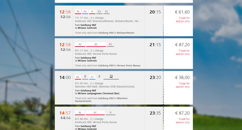 Добраться в Милан на поезде можно, но только с пересадками, причем не одной. Дорога займет около 7-9 часов. С одной стороны, это быстрее, чем на автобусе, но с другого бока, пересадок очень много, поэтому такой вариант, на мой взгляд, менее удобен.