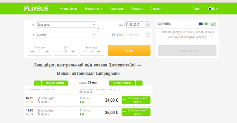 Приобрести билет на автобус удобнее всего на сайте FlixBus.