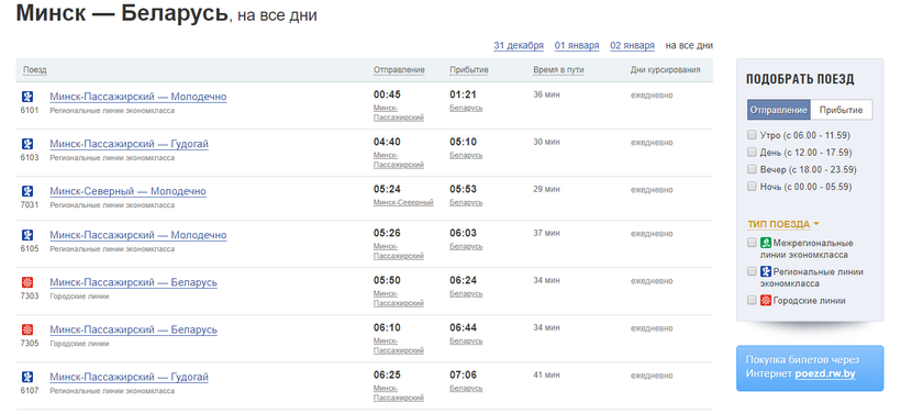 0,60 белорусских рублей для поездов региональных линий, 0,90 — городских. В пересчете на российские рубли это где-то 20 и 30 соответственно.