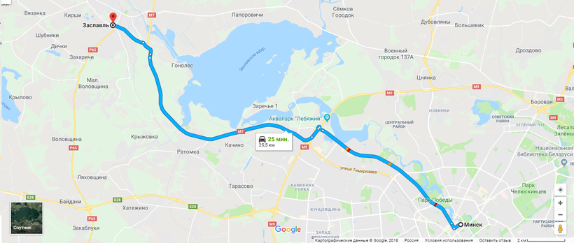 Минск — Заславль — маршрут на карте