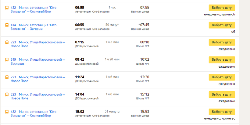 - 223 (от автовокзала Минска, ул. Карастояновой, 45);