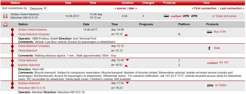 Расписание можно посмотреть на их сайте. Автобус следует в Эцталь, откуда нужно сесть на поезд, что следует в Куфштайн. Там пересадка в Мюнхен. В пути четыре часа.