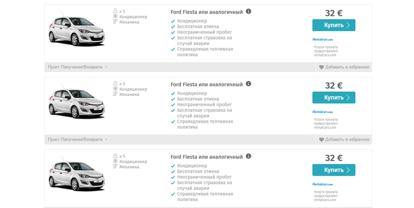 Если вы предпочитаете передвигаться даже на отдыхе на машине, то тогда есть смысл арендовать на весь период отпуска автомобиль. Если поискать машины заранее (желательно хотя бы за несколько недель), то можно найти предложения за 25-30 евро в сутки. Чтобы забронировать машину, воспользуйтесь одним из поисковиков, например, этим.