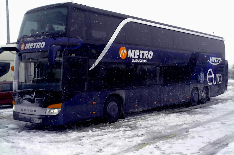 Автовокзал располагается вот здесь: Прибыв на автовокзал, можно отдать предпочтение автобусу одной из компаний. Для примера приведу транспортную компанию МЕТРО, выглядят ее автобусы вот так: