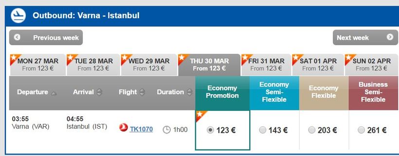 Авиарейсы из Варны в аэропорт Стамбула выполняет компания Turkish Airlines, с расписанием полетов можно ознакомиться на официальном ресурсе компании. Вообще, в сутки имеется только один рейс и отправляется он в совсем неудобное время: