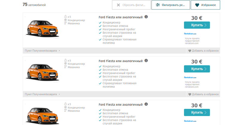 Дороже всего, конечно, обойдется аренда автомобиля, но и здесь можно сэкономить. Для этого постарайтесь забронировать подходящий вариант заранее – хотя бы за месяц до поездки. В таком случае, особенно если машину планируют взять минимум на 5-7 дней, можно неплохо сэкономить, подобрав неплохой вариант за 25-30 евро в сутки. Поискать подобные предложения можно на поисковиках, например, этом.