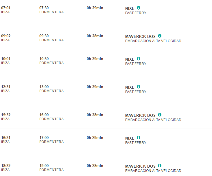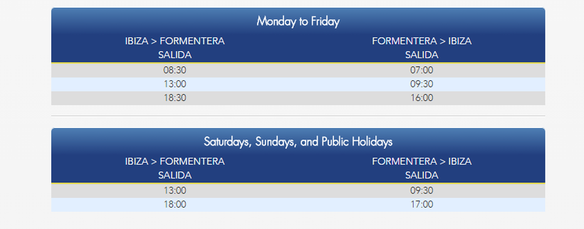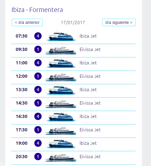- Паромы от Trasmapi отправляются с порта Ибицы, начиная с 07.30 до 20.30 с интервалом от полутора до двух часов. Важно знать, что по выходным транспорта от этой компании практически вдвое меньше.