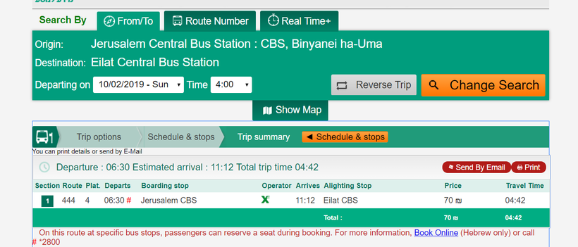 Билет на автобус из Иерусалима в Эйлат обойдется в 70 шекелей. В переводе на доллары получается около 20.