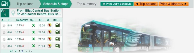 Ниже приведена информация о том, сколько часов вам потребуется, чтобы добраться от Эйлата до Иерусалима, а также приведена примерная стоимость проезда (средняя цена билета) на том или ином виде транспорта.