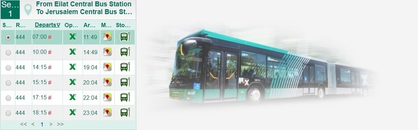 В пятницу нет рейса в 17:00, последний автобус отправляется в 13:00. Остальные рейсы в такое же время, что и в расписании с понедельника по среду. В субботу до Иерусалима отправляется только три автобуса. Отправление в 15:30, 16:30 и 19:30.