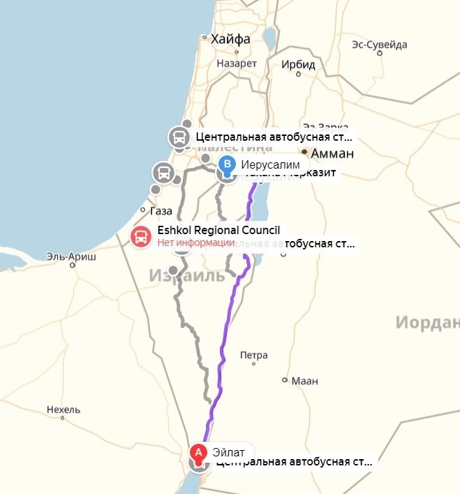 Эйлат — Иерусалим, Иерусалимский округ — маршрут на карте