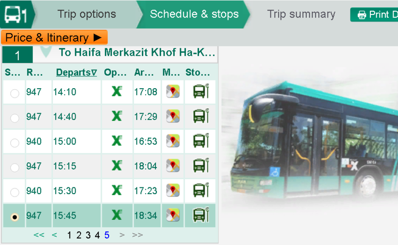Ниже приведена информация о том, сколько часов вам потребуется, чтобы добраться от Иерусалима до Хайфы, а также приведена примерная стоимость проезда (средняя цена билета) на том или ином виде транспорта.