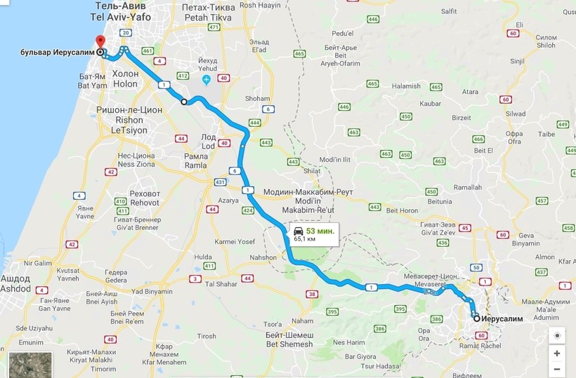 Иерусалим, Иерусалимский округ — Яффа — маршрут на карте