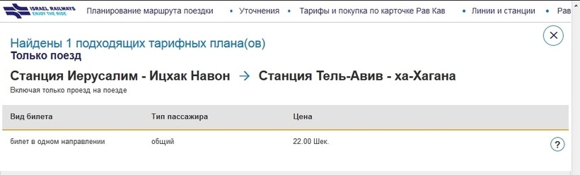 От Иерусалима до Тель-Авива билет на поезд в одну сторону стоит 22 ILS (5,36€).