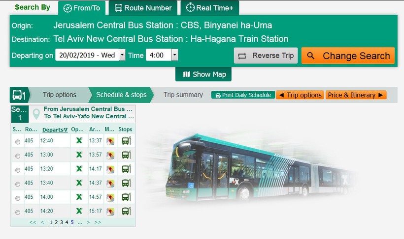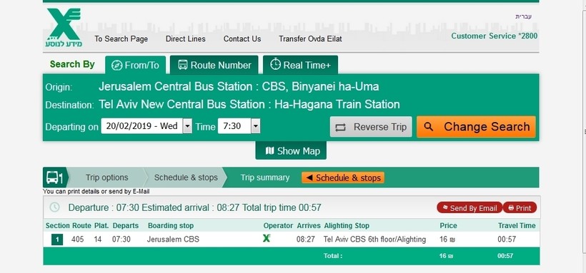 На автобус Иерусалим-Тель-Авив — 16 ILS (3,9€)
