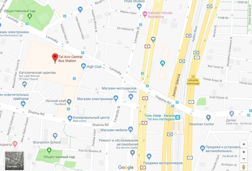 Центральная автобусная станция находится недалеко от ж/д станции ха-Хагана, добраться до Яффы можно тем же автобусом №46.