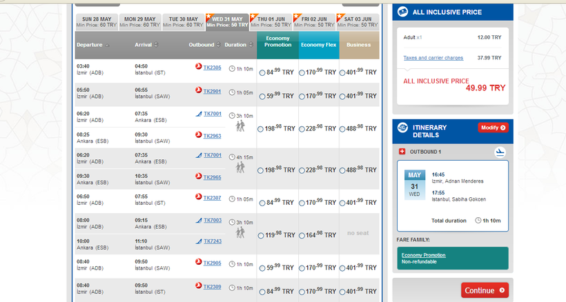 В Turkish Airlines акции тоже есть, но их меньше. Если повезет, можно купить билет всего за 50-60 турецких лир (13-16 долларов).