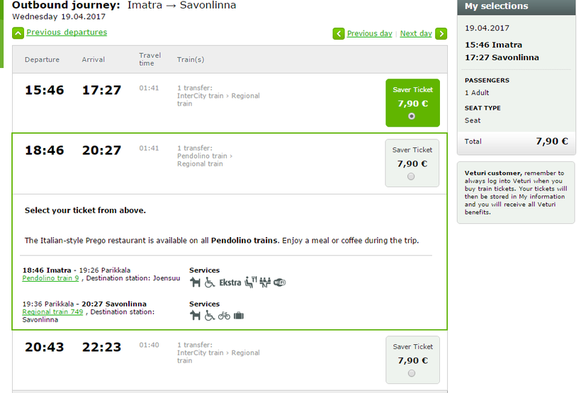 Купить билеты на поезд можно на вокзале Иматры или через официальный сайт финских железнодорожников.