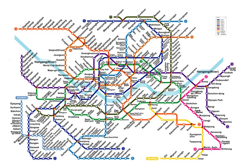 Из всех способов передвижения по этому маршруту я вам порекомендую совершить поездку до Сеула на метро. Это удобнее всего.