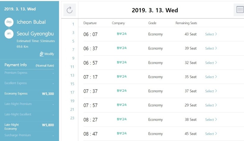 Ниже приведена информация о том, сколько часов вам потребуется, чтобы добраться от Инчхона до Сеула, а также приведена примерная стоимость проезда (средняя цена билета) на том или ином виде транспорта.