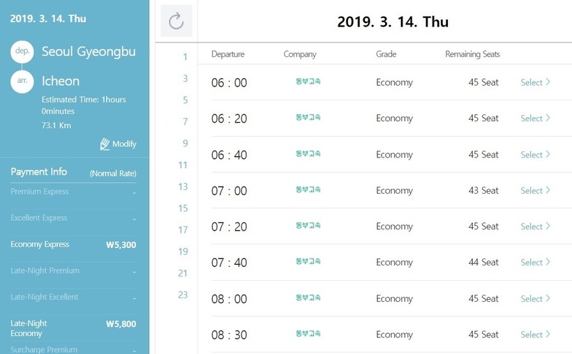Ниже приведена информация о том, сколько часов вам потребуется, чтобы добраться от Сеула до Инчхона, а также приведена примерная стоимость проезда (средняя цена билета) на том или ином виде транспорта.