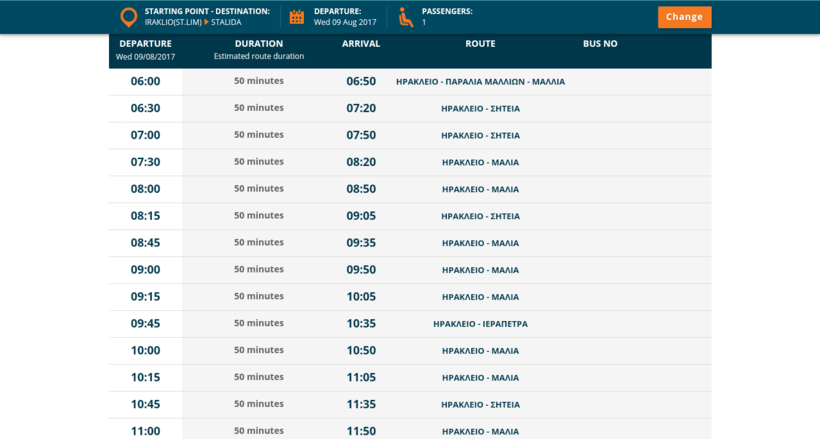 Ниже приведена информация о том, сколько часов вам потребуется, чтобы добраться от Ираклиона до Сталиды, а также приведена примерная стоимость проезда (средняя цена билета) на том или ином виде транспорта.