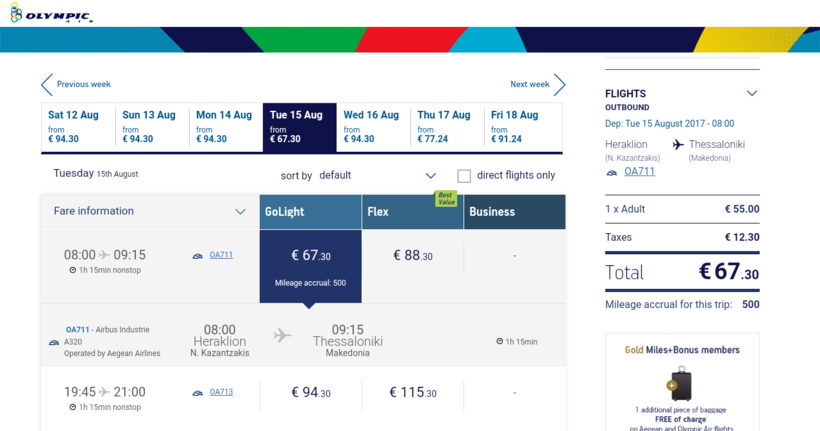 Билеты продаются на сайтах авиакомпаний Olympicair и Ellinairm.