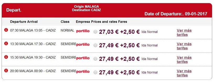 Автобусы и поезда едут примерно одинаковое время до Кадиса, и стоимость почти идентичная. Но я не хотела делать пересадку, пусть и не сложную, а также была уверена, что в автобусе есть интернет. Поэтому мы поехали с перевозчиком Portillo.
