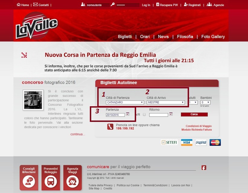 1. Далее в строку Città di Partenza вводим Catanzaro