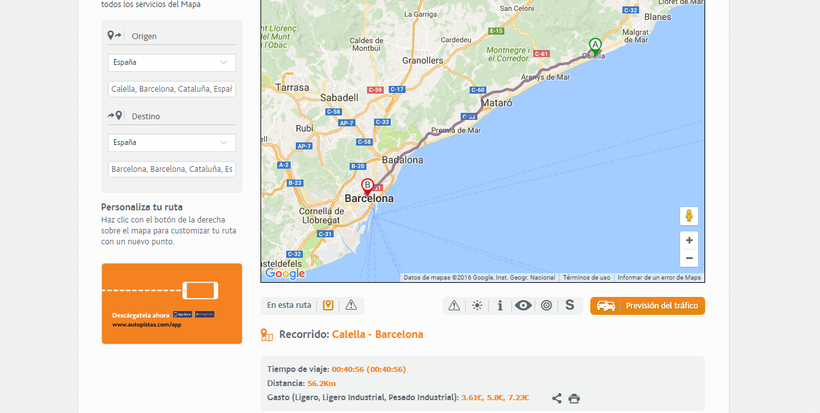 Калелья — Барселона — маршрут на карте