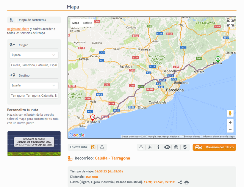 Из Калельи по региональным дорогам С-32 / С-60 надо выехать на автобан АР-7, которым и двигаться прямо до Таррагоны.