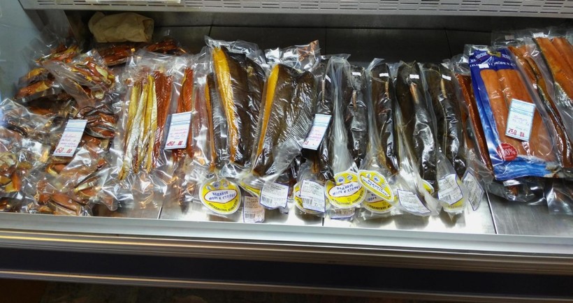 На территории аэропорта можно купить разнообразные морепродукты и рыбу. Вот даже есть вывеска, куда нужно следовать.