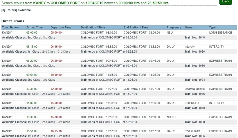 Ехать в Коломбо таким транспортом придется от двух до четырех часов, смотря какой рейс и вид поезда выбрать. Если нужно быстрее добраться, то стоит покупать билеты на Intercity.