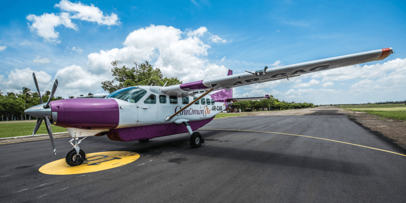 Обслуживает маршрут Cinnamon Air. Это некое воздушное такси. Маленький самолет, в котором много багажа не провезешь. :)