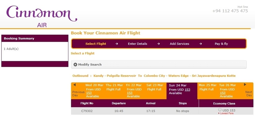 Из Канди в Коломбо на самолете