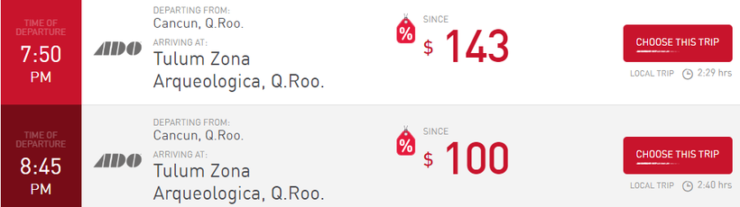 Следуют автобусы не только до автовокзала современного города Тулума (Terminal Autobuses Tulum ADO) — рейсы, отправляющиеся в 07:50, 08:45 и 09:45, доставят прямиком к древнему городу цивилизации майя.