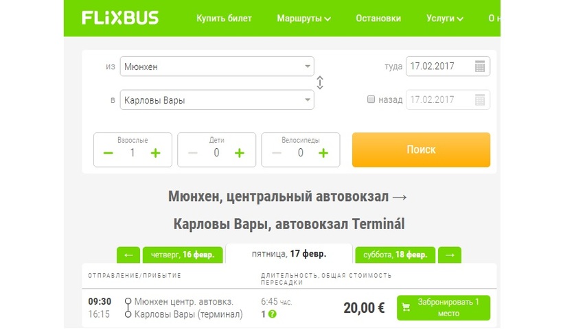 В Карловы Вары автобус прибывает к железнодорожному вокзалу Karlovy Vary Dolní Nádraží на Západní, 2080/2A в 16:15. Вот только автобус ездит не каждый день, приблизительно 3-4 раза в неделю, четкого расписания нет.