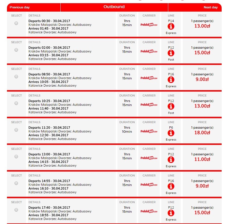 Автобусы ездят в Катовице с утра до вечера, в этом можно убедится, посетив сайт: