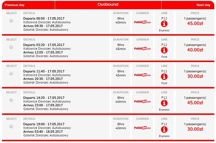 Поездка на автобусе обойдется недорого. Билет можно купить даже за 30 злотых (8 евро). Это самый дешевый вариант поездки из всех, которые я вам предложу. Поэтому, если у вас на первом плане стоит экономия денег, тогда стоит выбирать именно этот способ.