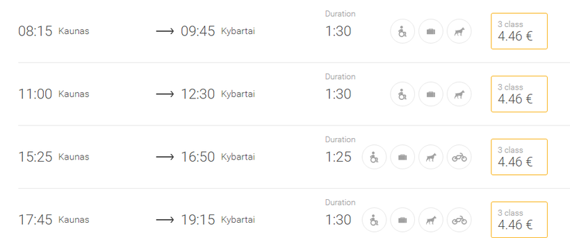 - Из Каунаса в Кибартай отправляется несколько поездов в течение дня.