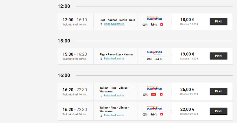 Купить билет на автобус можно через интернет на литовском сайте по продаже билетов или в кассе автовокзала.