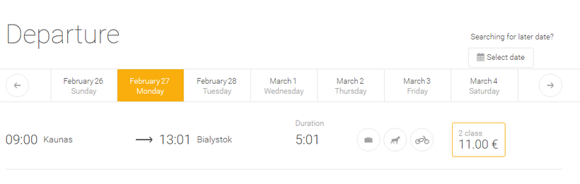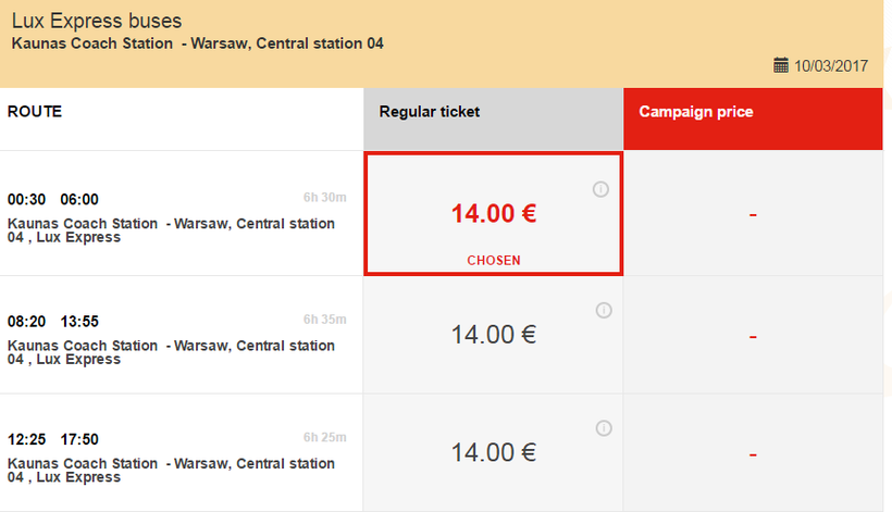 Маршрут обслуживает компания LuxExpress. Именно на сайте этого перевозчика можно подробно посмотреть доступные рейсы на нужную дату, этот веб портал я укажу ниже.