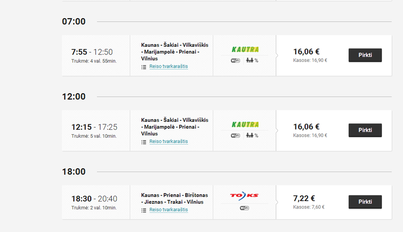 Посоветовавшись, мы решили ехать в Тракай на общественном транспорте. Очень удобно, что в Литве есть сервис, на котором предоставлена вся актуальная информация об автобусных рейсах, осуществляемых в стране.